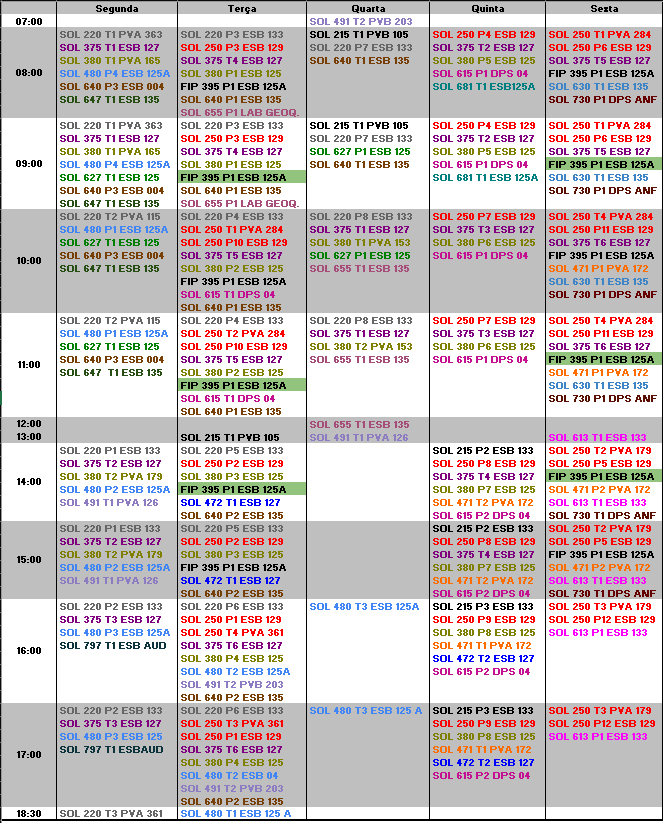 Horários das aulas de graduação e pós-graduação do DPS (2025-II)